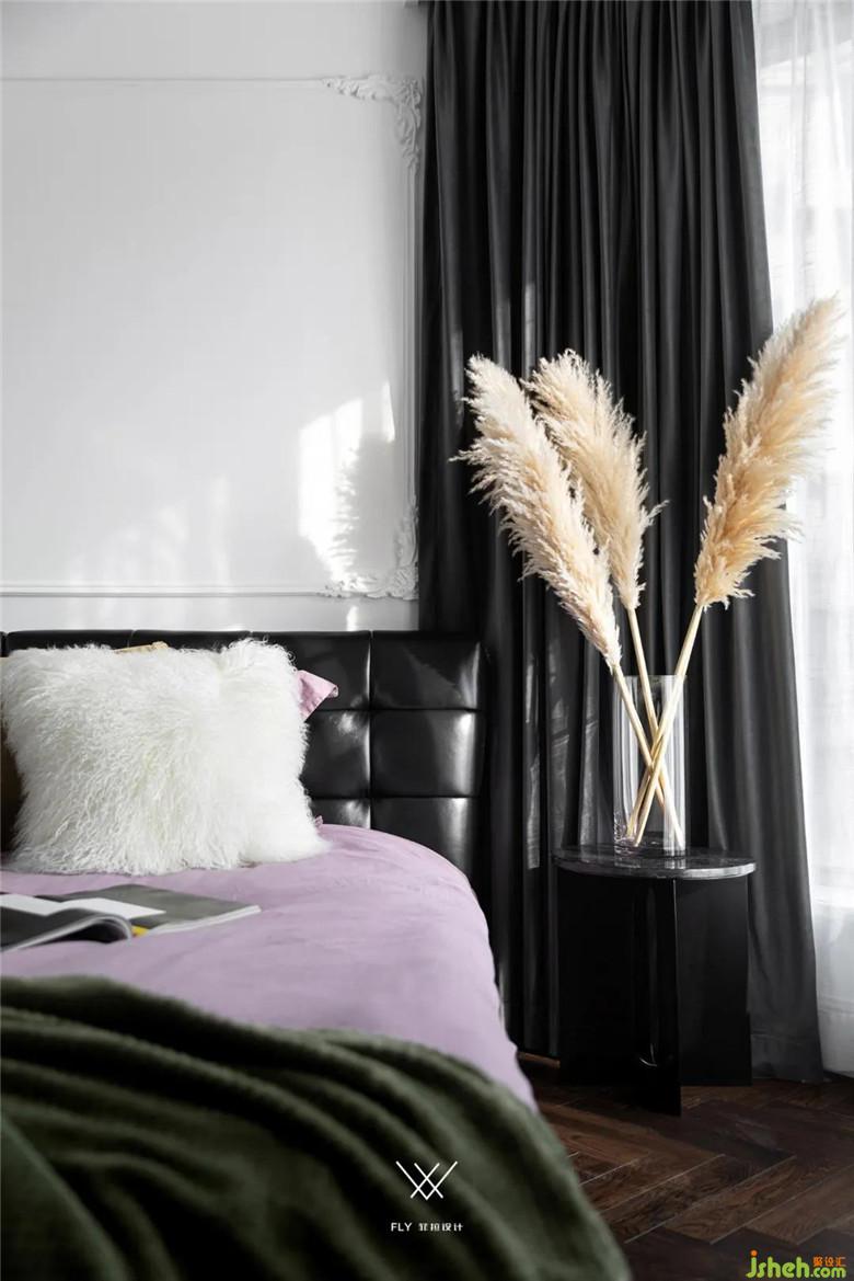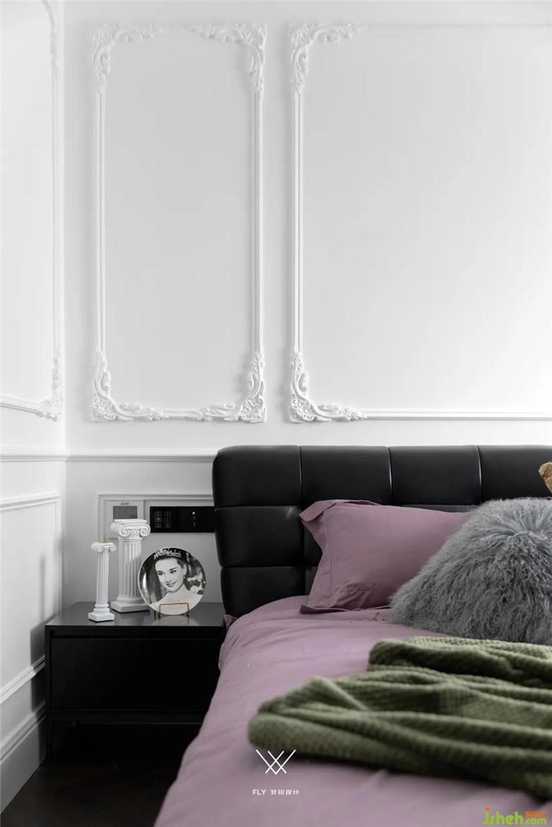 主臥的雙開門增強儀式感,也最大限度的打開了客廳和主臥的互動性,兩者之間主體家具均以軸線對稱。裝修公司將轉(zhuǎn)換成雙動線可以讓空間被充分利用起來,原有進主臥的通道改成衣帽間,這樣原來不大的主臥開間的尺度被完全保留下來,床尾還能再增加衣柜體量和梳妝臺的位置。
