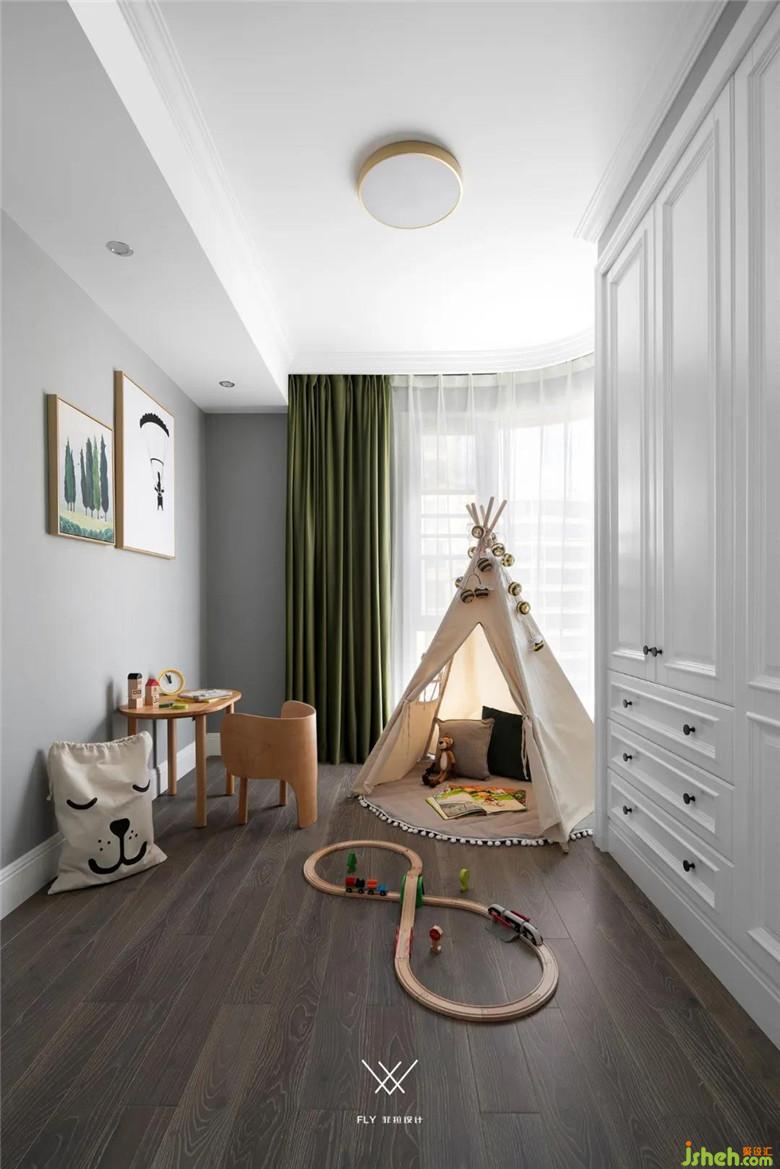 原本小孩房是兩個獨立的空間,為了增加聯(lián)動性不再做封閉式的門,由門洞聯(lián)結(jié)合二為一。裝修公司在這個空間里做了動靜分區(qū),朝東房間抬高做睡眠區(qū)域,床墊直接擱置地臺上,趣味性十足,朝北的房間則是活動玩耍做功課的空間。