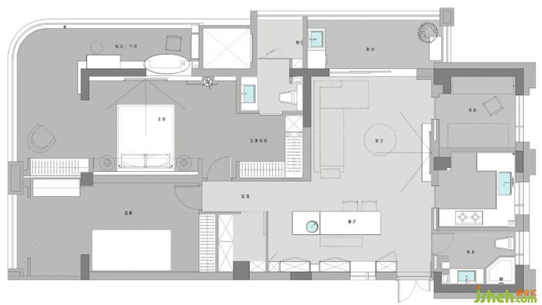 杭州西湖國際城躍層裝修設計:聽憑風引 · 浮塵
