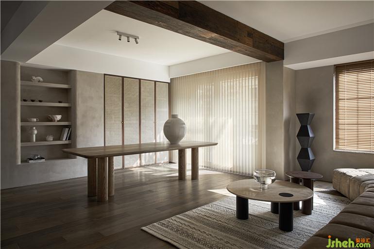 希望家呈現(xiàn)的是古樸調(diào)性的侘寂風,事物與時間的關系在這個空間里與居住者對話;靈魂自由,不受拘束,杭州家居設計打造一個更趨于民宿式的美學空間。