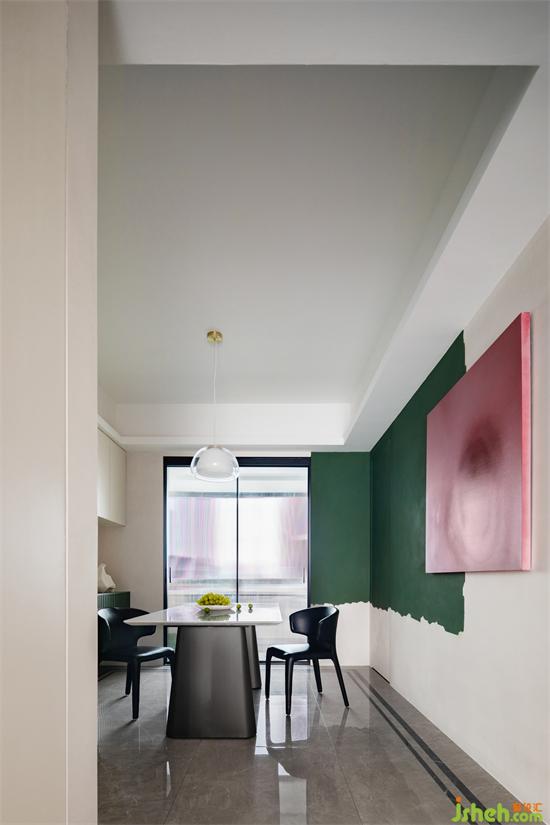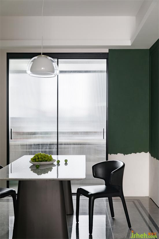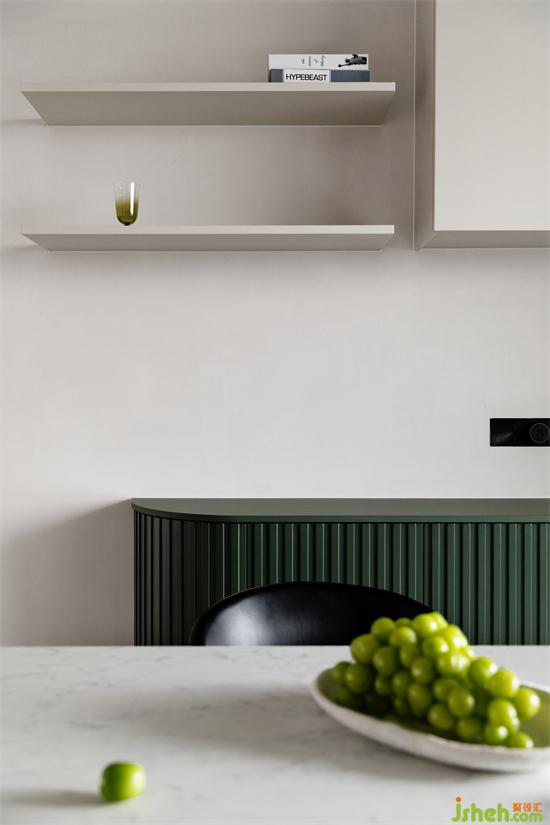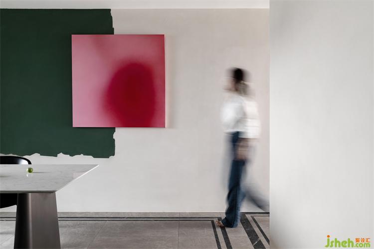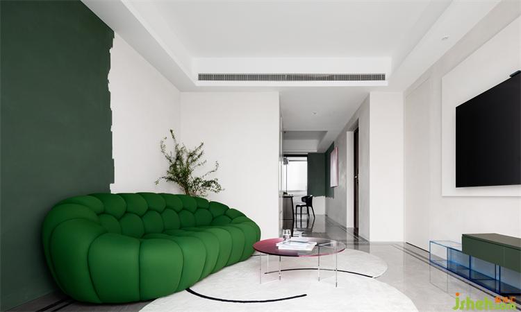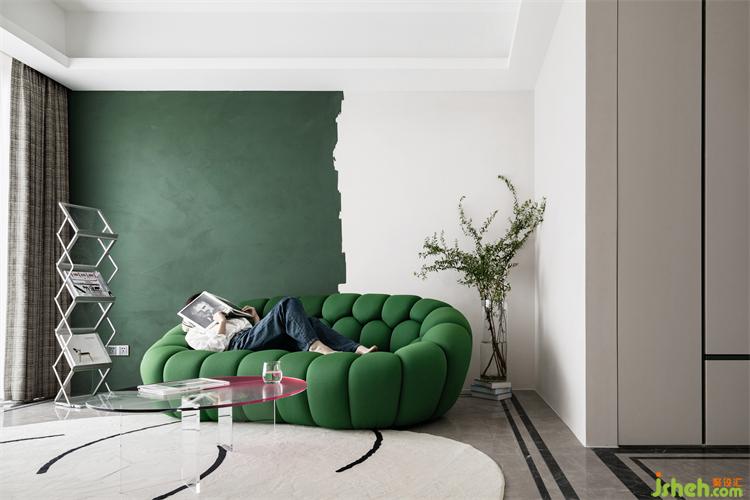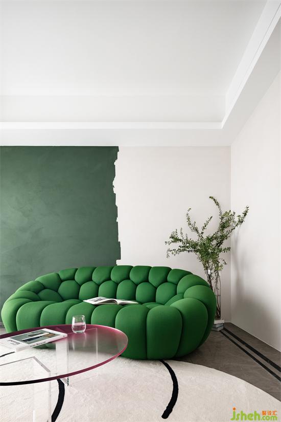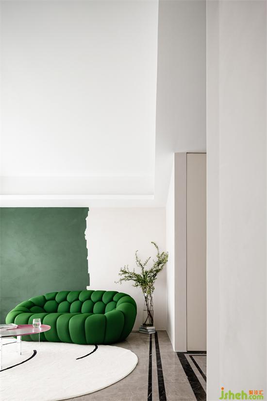 匯港城精裝房改造純粹的空間與色彩的交匯言語,同一區(qū)域綠的顏色進階,感受色彩的流動變化,沖破各自為營的束縛,紛繁詩意流轉(zhuǎn)蔓延。