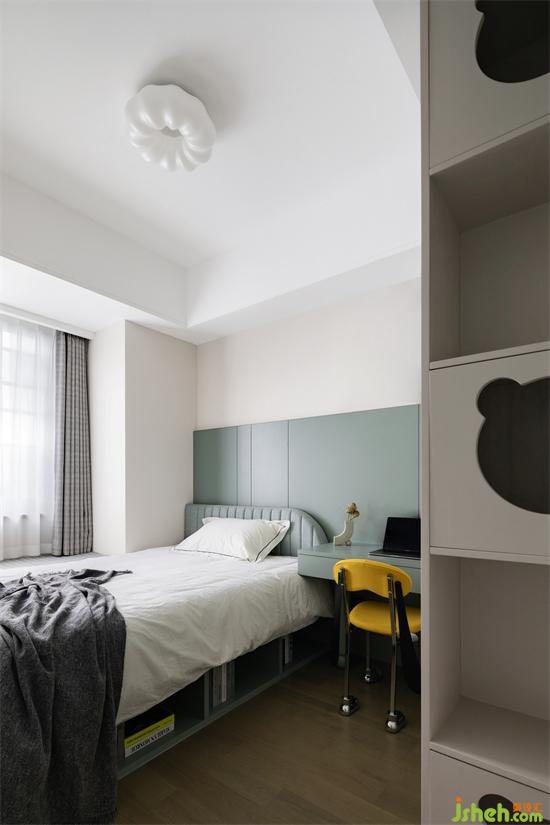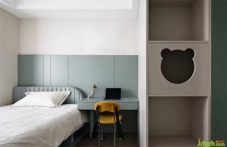 匯港城精裝房改造色彩與幾何元素的一場童趣聚會,睡眠空間的溫柔爛漫,兩間兒童房各有其言。