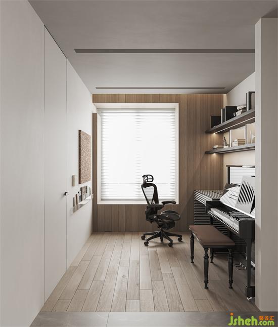 可調(diào)式格局總是可以增加平面空間運用上的靈活性,杭州曉風(fēng)印月裝修設(shè)計將原本局促的小房間做敞開式書房,區(qū)域的通透、光感的流動、過道的空間感都得以舒展。