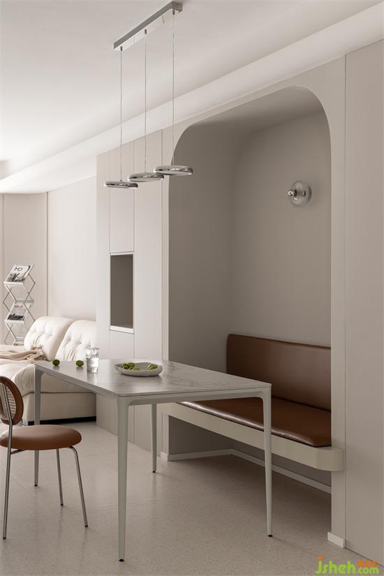 讓藝術(shù)有效地成為生活的有形載體,處理好不同功能需求之間的接洽與融合,綜合衡量之下餐邊柜與卡座相結(jié)合的餐廳形式,杭州金成英特爾灣裝修設(shè)計多重角度思考的表現(xiàn)姿態(tài),有著藝術(shù)作品的整體一致性魅力。