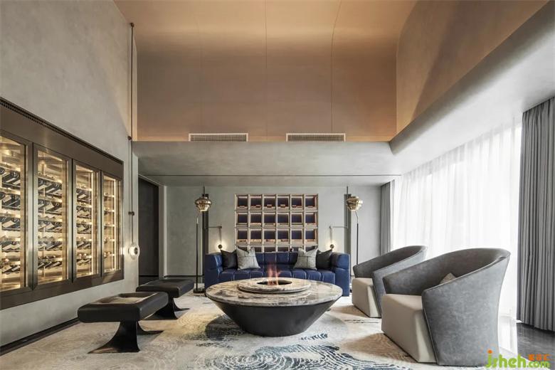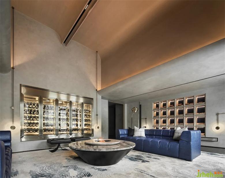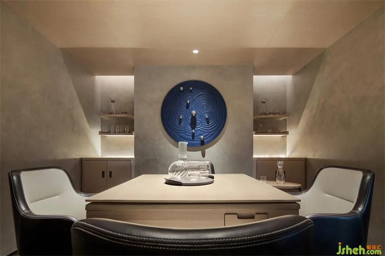 藏在空間內的棋牌室,讓綜合空間互動性更強。會所設計體態(tài)的統(tǒng)一結合,配以一抹藍的點綴,讓整個空間厚重又獨具趣味。