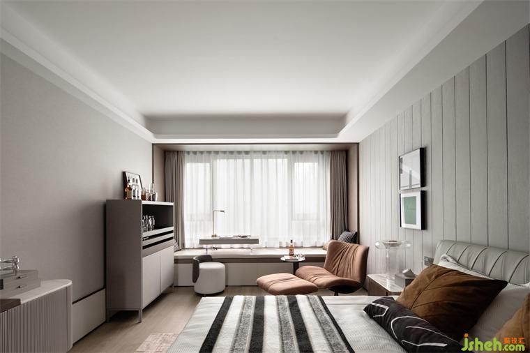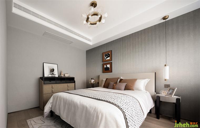 延續(xù)舒適用意,蔓延至睡眠區(qū),樣板房設(shè)計令原有的平和氣息持續(xù)為睡眠環(huán)境服務(wù),通過干凈的塊面和比例、輪廓,將簡明的藝術(shù)隱秘地融入到了生活空間之中。