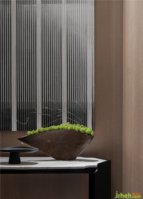 相較于首層的活潑寫意,二層會(huì)所的色彩布置則更為沉靜。無(wú)錫售樓處設(shè)計(jì)與前廳相對(duì)的珍瓏棋室,在木飾面映襯下頗有幾分東方的儒雅。