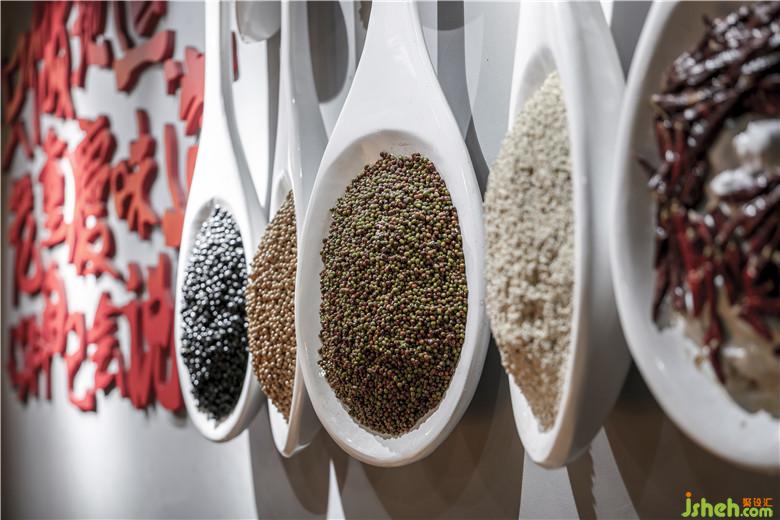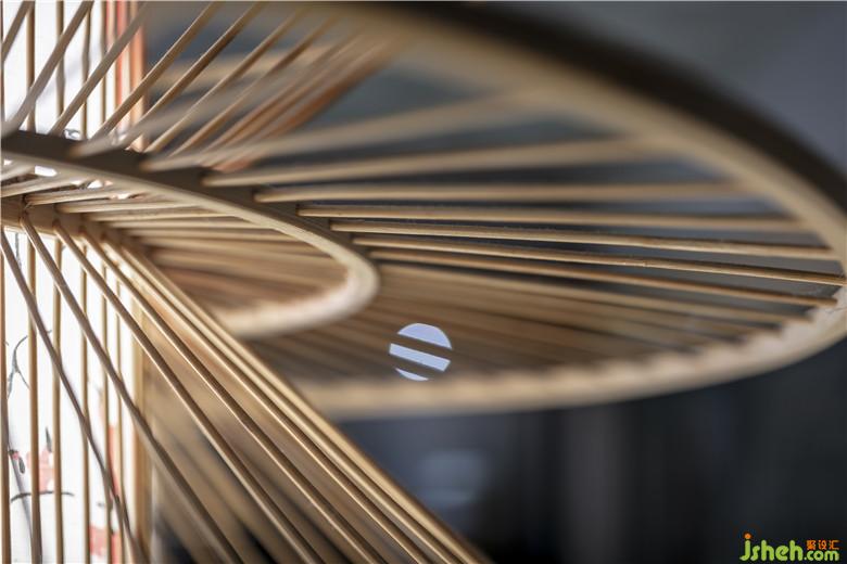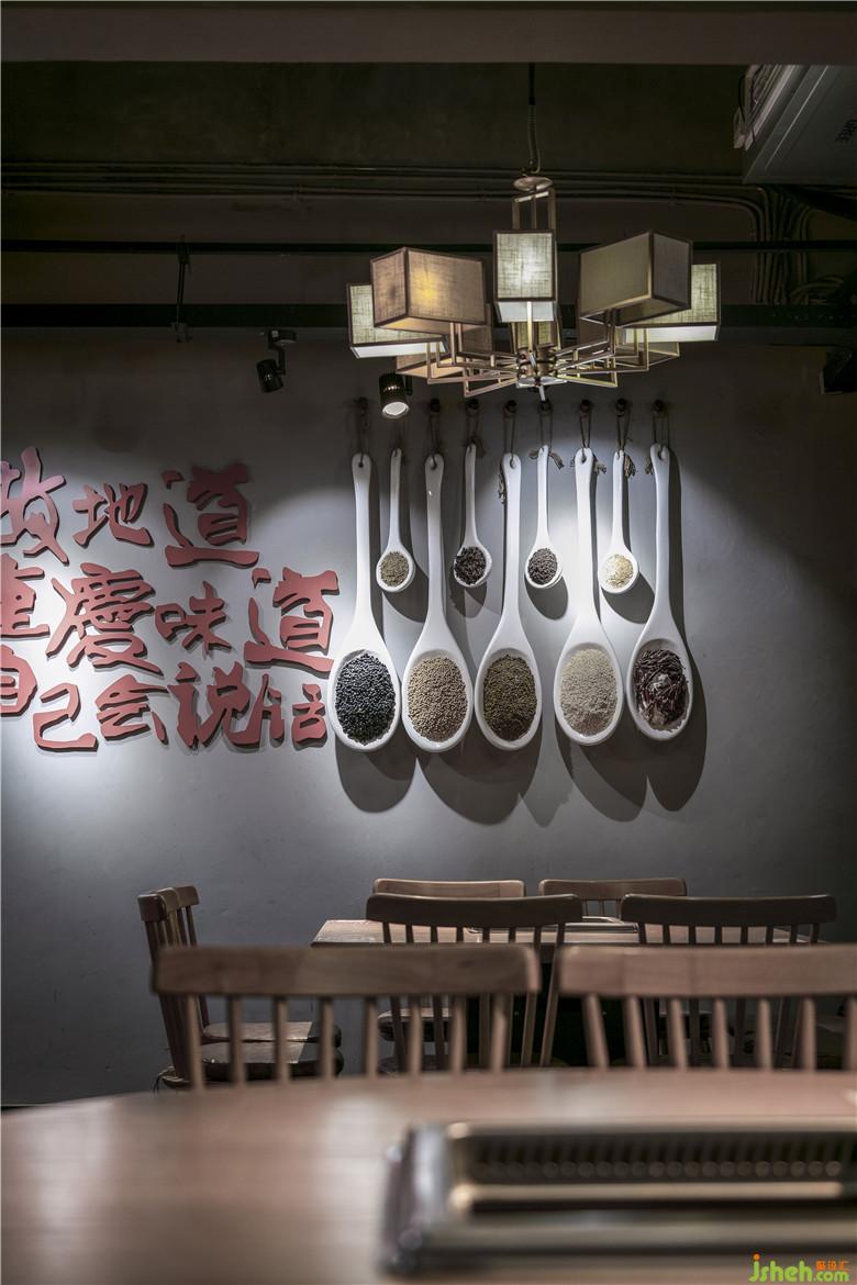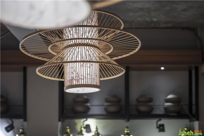 原木色的長條凳,雕花窗格和手工的燈籠,都是在顏色上拉開紅色與青色的距離,完整地把這些色彩融合。室內(nèi)空間整體以灰黑色為基調(diào),構(gòu)成一個(gè)休閑放松的就餐環(huán)境,疏密有致,光影綽約。