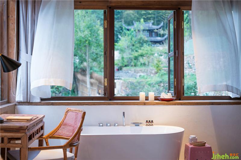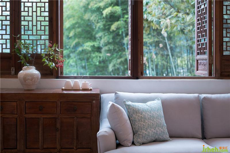 門罩、天井、庭院和磚石雕鏤的漏窗矮墻將客房分列兩側(cè)互不干擾確保客房的私密。
