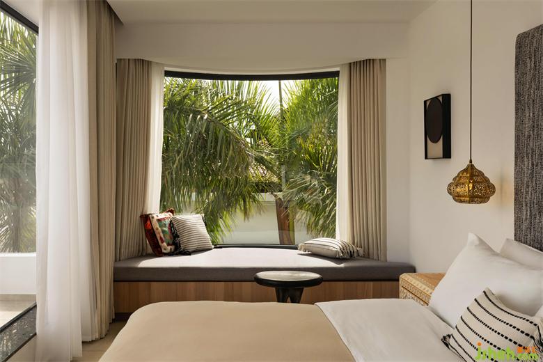 去風(fēng)格化的風(fēng)格已成為當(dāng)今主流的設(shè)計方法之一,從建筑到室內(nèi),其影響處處可見。度假酒店設(shè)計為了體現(xiàn)極簡主義的利落感和都市感,留白是設(shè)計師最常用的表現(xiàn)手法。但并不意味著要刻意回避設(shè)計,只不過是把空間保持在最簡單松弛的狀態(tài)。
