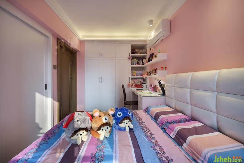 少女心爆棚的粉紅色墻令人心動(dòng),深圳室內(nèi)設(shè)計(jì)師搭配白色天花,啞光漆的衣柜,清新純潔,晌午的陽(yáng)光從窗外照射進(jìn)來(lái),懶洋洋的格外溫馨。
