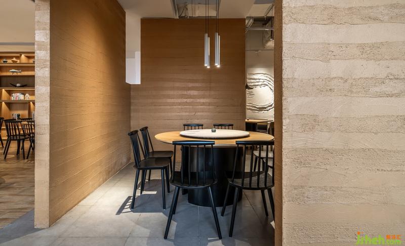 南方鄉(xiāng)下在普通人心理層面形成的印象是什么?當(dāng)然是“潤”。去過南方鄉(xiāng)下的人,一定見過那些用版筑的方式制成泥磚后最常見又最廉價的農(nóng)居。設(shè)計師以此作為空間的材料基點,讓色調(diào)與肌理形成有內(nèi)在聯(lián)系的呼應(yīng),在都市中帶入農(nóng)居的概念。