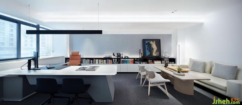 在后區(qū)(工作區(qū)域)的設(shè)計中,設(shè)計師則把握住功能流線、秩序清晰,空間簡潔、干凈的原則,用較為克制的適度設(shè)計與根據(jù)現(xiàn)有空間條件對癥下藥的輕量介入理念,只保持為公司人員習(xí)慣好用的常態(tài)化格局。使大家在搬遷之后不必花費太多精力去重新適應(yīng)環(huán)境,而能迅速安心的投入工作。盡可能的開放式辦公能保持各部門之間的高效運轉(zhuǎn)。