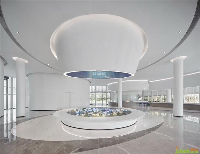 遵循靈活簡(jiǎn)潔的原則,整體空間采用弧形和環(huán)形的創(chuàng)意造型設(shè)計(jì),嚴(yán)格挑選色彩進(jìn)行構(gòu)建,天花與墻面采用留白手法,把空間的主體留給體驗(yàn)者。云白色作為主色調(diào),既貼合天空與科技的主題,也符合人們追求極簡(jiǎn)的時(shí)代情緒——極簡(jiǎn)只是手段而非目的,斷舍離是為了騰挪出更多的空間容納更高級(jí)的思考。
