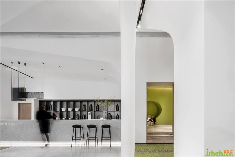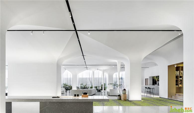 同時(shí),借由空間中的“枝”、“干”,順勢(shì)伸展開的曲直有度的線條,自然地切割與圍合出了不同的功能空間區(qū)域。售樓處設(shè)計(jì)