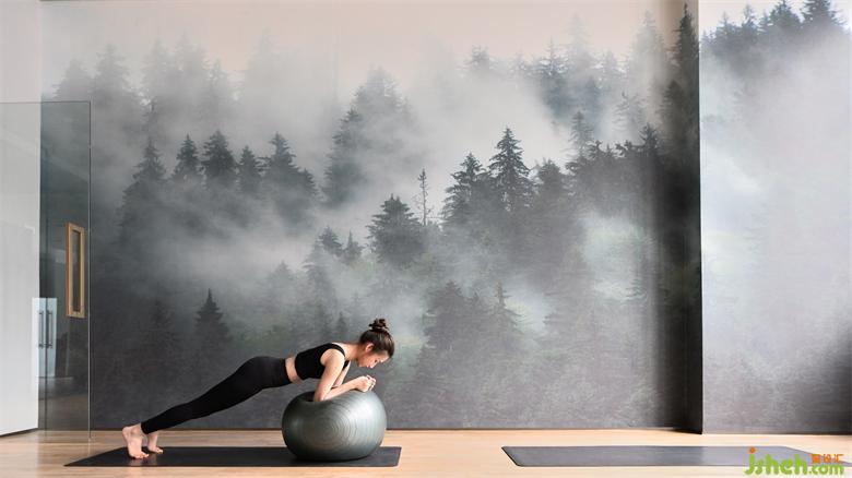 在健身區(qū)的設計中,大面積的自然采光配合各區(qū)域不同健身主題的背景墻,再輔以頂部線條的運用,營造出一種緩緩流動的秩序感,在簡單的符號語言之間,講述空間的精神與狀態(tài)。