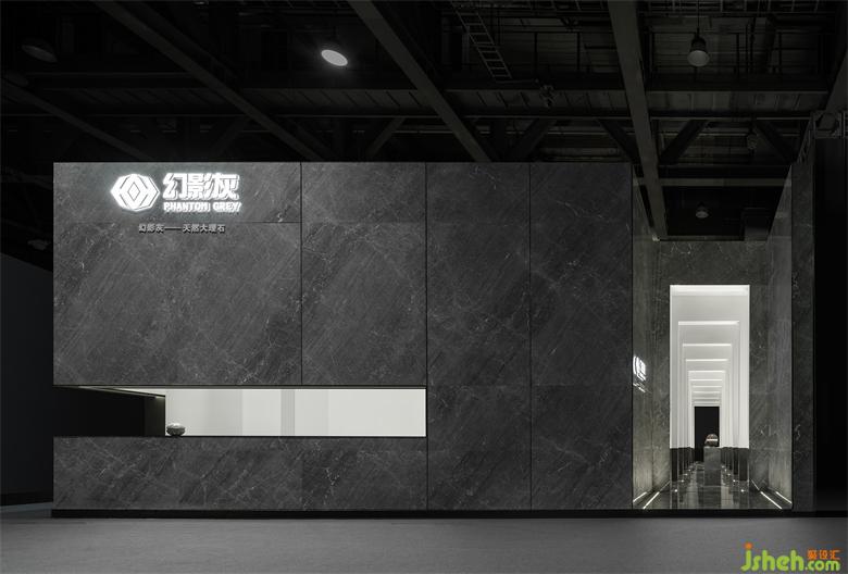 大理石為整個(gè)場景奠定著基調(diào)。空間內(nèi)部建構(gòu)上半部分的淺對(duì)應(yīng)下半部分的深,展廳設(shè)計(jì)幻影灰石材由地面上升、包圍,削弱了結(jié)構(gòu)下半部分的存在感,讓整個(gè)空間變得深邃而輕盈。