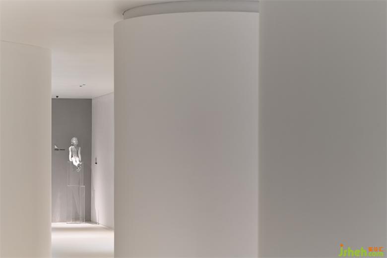 The cold and restrained feature of the previous space is replaced by the winding and smooth whiteness, extending backward from the tea room.