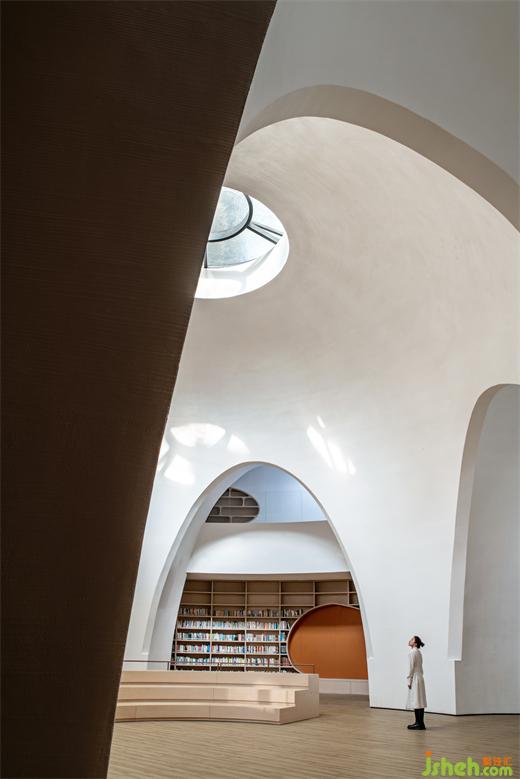 拱頂?shù)慕Y(jié)構(gòu)形態(tài)賦予書吧一種古典的空間內(nèi)核,這種既熟悉又陌生的感受為人們帶來(lái)平靜。