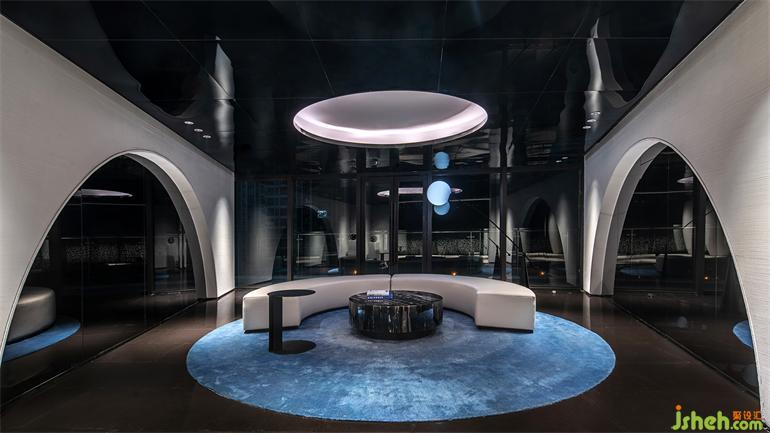 會所設計以暗色系為基調,充滿未來感的裝置形成能量場,出現(xiàn)在三層會所。