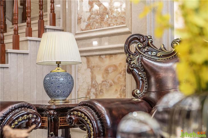 木質樓梯,扶搖直上,水晶吊燈如瀑布,流曳一地春光。各種不同材質的家具飾品,墻面上、展柜里,各自驕傲著。也各自映照大宅的美。