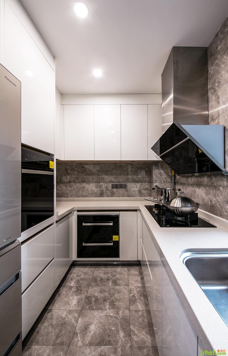 廚房,一日三餐,一個(gè)有溫度有愛(ài)意的生活領(lǐng)域。白色高光烤漆的櫥柜、隱藏式的櫥柜拉手系列、麻灰色大理石墻地磚、還有嵌入式黑玻璃的廚電搭配,處處的細(xì)節(jié)都彰顯著優(yōu)質(zhì)的格調(diào)生活?,F(xiàn)代的線(xiàn)條感及低調(diào)奢華的設(shè)計(jì)搭配,將輕奢主義的生活發(fā)揮到極致。