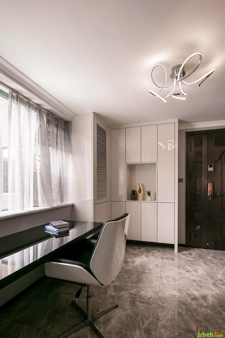 將入門(mén)的玄關(guān)空間同時(shí)劃分出閱讀工作的區(qū)域,書(shū)桌直接面向一扇接近兩米的窗戶(hù),敞亮溫暖的陽(yáng)光滲入,無(wú)疑是學(xué)習(xí)工作最好的區(qū)域,而別致線(xiàn)條的燈飾更是這個(gè)空間的一處亮點(diǎn)。