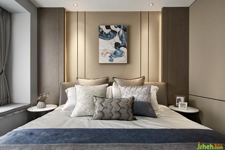 大窗臺(tái)灑進(jìn)午后的陽(yáng)光,主臥在色調(diào)上選擇了舒適度較高的灰色系家居飾品加以點(diǎn)綴,靜謐與溫暖的感覺(jué),是一種極易進(jìn)入夢(mèng)鄉(xiāng)的柔情。