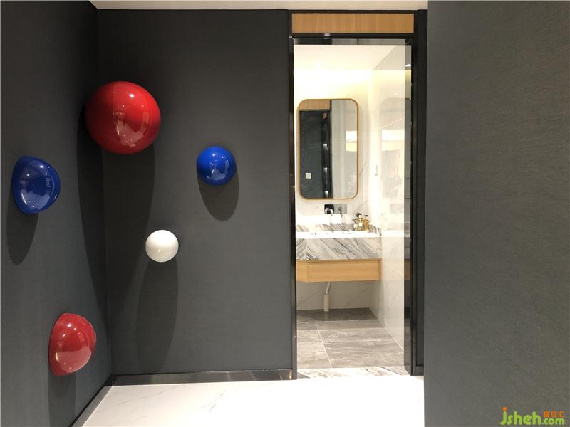 兒童房將童趣進行到底,可愛的熊抱玩偶與功夫熊抱擺件,還有墻上的熊貓裝飾畫,讓整個樣板房設計房間充滿萌趣。黃與綠的大膽撞色,營造出童話般的小小世界。