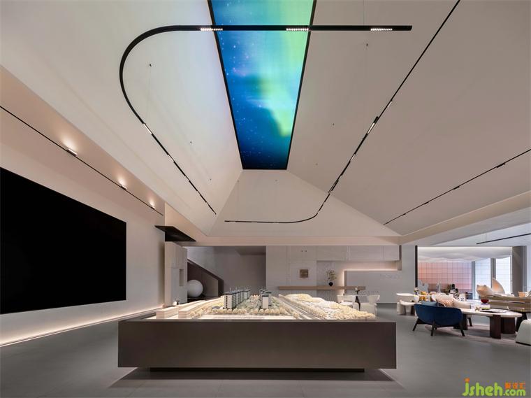 空間布局兼顧了藝術(shù)館式的自由和開放,不僅滿足了功能性的需求,更將藝術(shù)與建筑融為一體。蜿蜒而上的藝術(shù)階梯,如同一條絲帶,銷售中心設(shè)計將空間與建筑緊密地連接在一起,增強了空間的連續(xù)性和流動性,為整個室內(nèi)注入了無盡的活力。