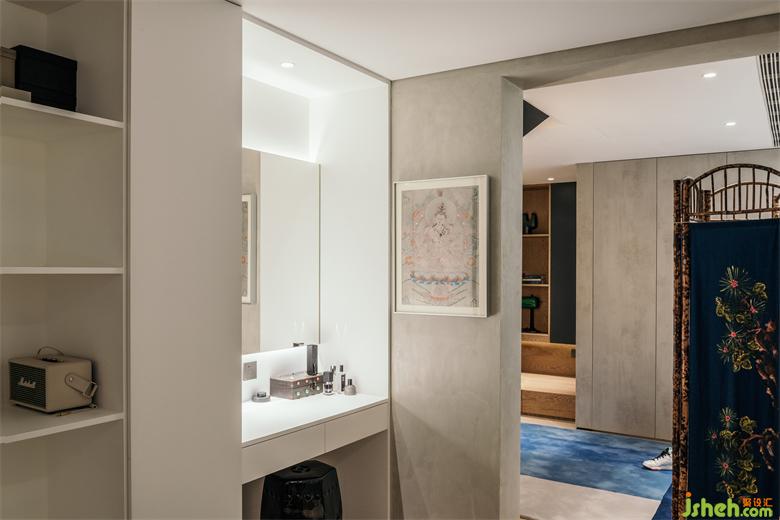 除了儲(chǔ)藏間的門之外,下沉層沒(méi)有一扇傳統(tǒng)意義上的室內(nèi)門。南京家裝設(shè)計(jì)客廳和臥室之間只由玻璃推拉門隔開,平時(shí)都是開啟的狀態(tài),狗狗可以毫無(wú)阻礙地在這里跑上幾圈。
