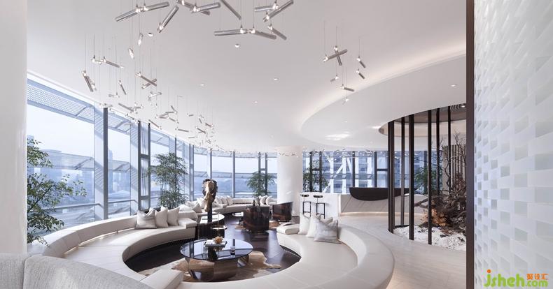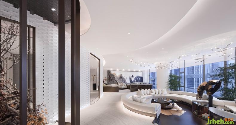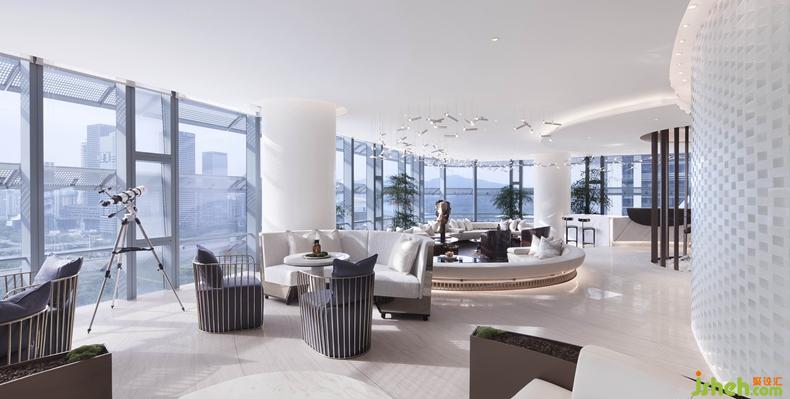 下沉式的漣漪狀沙發(fā)組團,按游艇級別打造,同時方便俯瞰市民中心CBD中心公園的壯麗景觀。