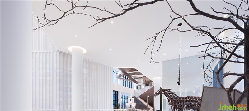 洽談區(qū)核心位置的文創(chuàng)展示臺上的大型樹狀藝術(shù)裝置,既像阿凡達里的生命樹,又似圍屋村口的大榕樹,集攢了所有人的童年故事。