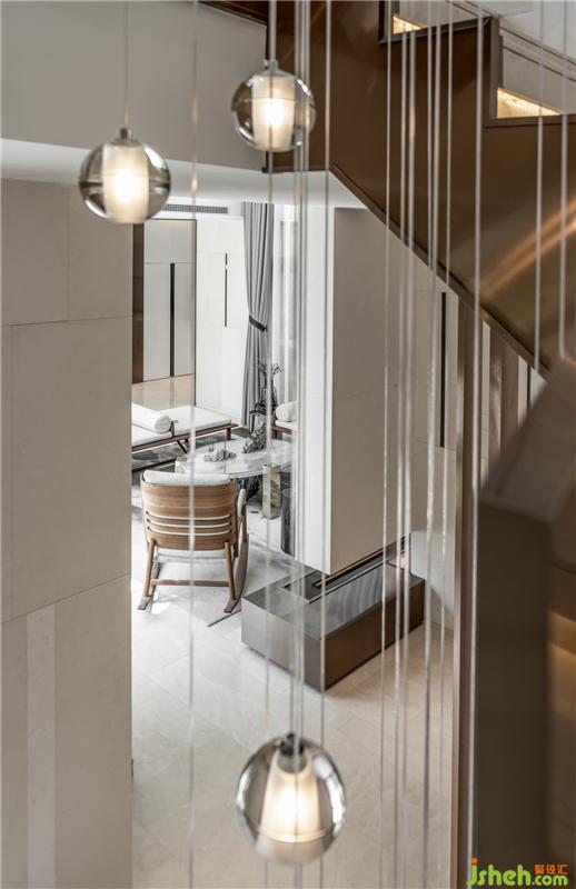 入口小景氣韻生動,玄關與偏廳透景相承,光影的隨機流動增添了自然的趣味、涵養(yǎng)。把每一個空間的過度當作一個可以框出獨特景觀的機會,如創(chuàng)作一幅畫,構建了室內外之間微妙的自然關系。別墅裝飾