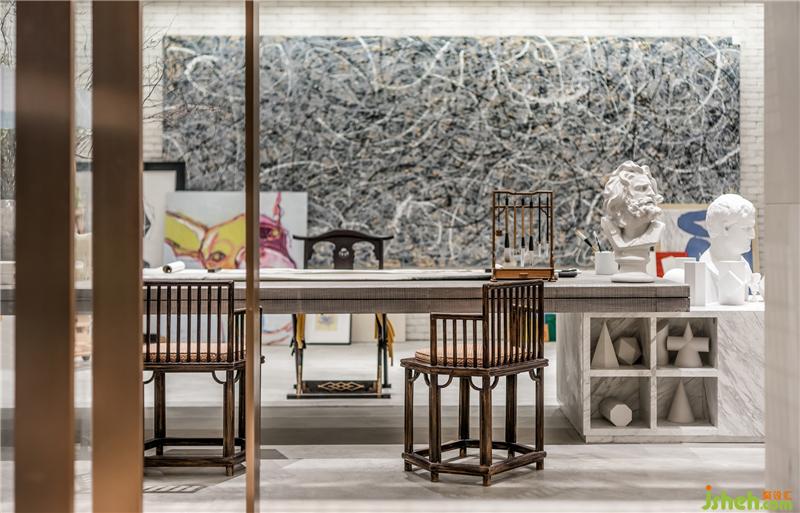 通過懸挑的玻璃過廊,遙老師在此“荷園“修習花道,常與閨蜜們相約于此,品茶、賞花,無論是春華秋實,還是嫩芽枯枝,都是一種從形走向神的自由之美,通過花道感受自然、生命的變化,在時光的流連中,守得一份從容和淡然。別墅裝飾