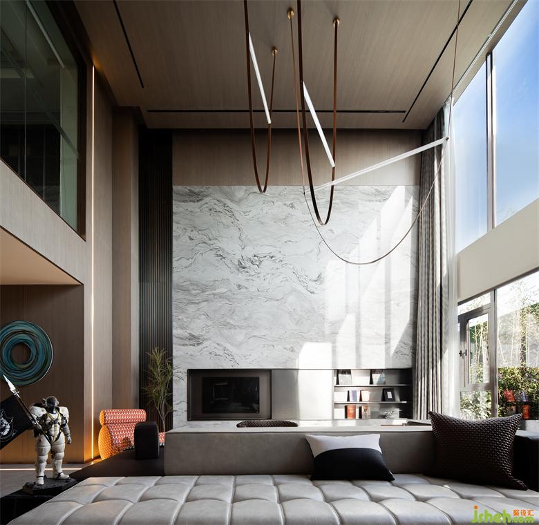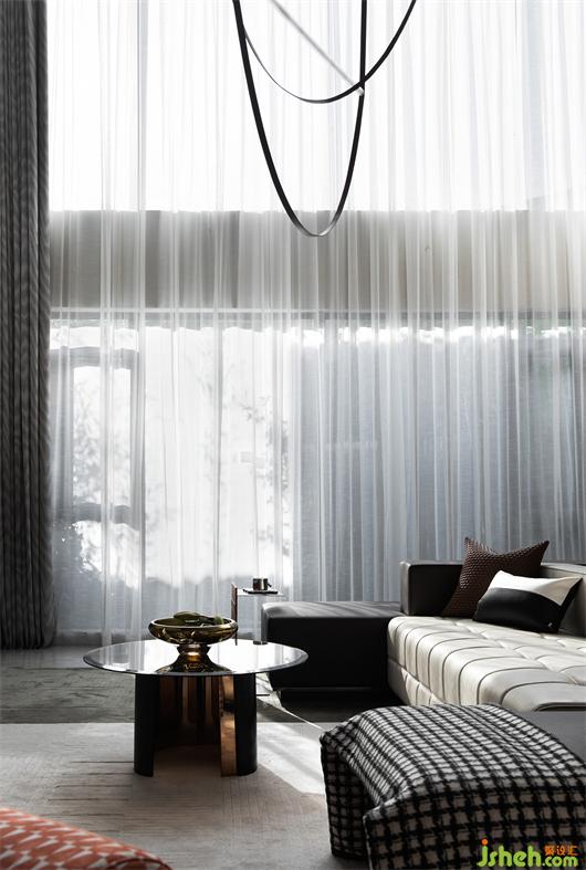 清晨一抹晨曦透過巨幅的落地玻璃窗灑入,樣板房設(shè)計讓整個空間頓時充滿一種夢幻的朦朧感。
