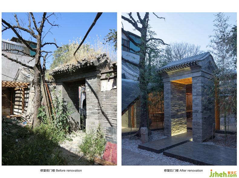 七舍合院位于北京舊城核心區(qū)內(nèi),院子占地寬約15米,長(zhǎng)約42米,是一座小型的三進(jìn)四合院。別墅裝飾由于原建筑共包含七間坡屋頂房屋,且正好是該胡同的七號(hào),故得名七舍。原始建筑年代較為久遠(yuǎn),別墅裝飾除了基本上還保持的木結(jié)構(gòu)梁柱和局部有民國(guó)特點(diǎn)的拱形門(mén)洞,其它大部分屋頂、墻面、門(mén)窗等都已經(jīng)破損或消失。院內(nèi)遺留了大量大雜院時(shí)期的臨時(shí)建筑,遍布清空之后的建筑廢料,雜草叢生、一片凋零。因此,本次改造設(shè)計(jì)一方面是修復(fù)舊的——對(duì)院落房屋進(jìn)行整理,保留時(shí)間迭代的印記,別墅裝飾修復(fù)各個(gè)建筑界面,加固建筑結(jié)構(gòu),重現(xiàn)傳統(tǒng)建筑的樣貌;另一方面是植入新的——新的生活功能配備(衛(wèi)生間、廚房、車(chē)庫(kù)等),新的基礎(chǔ)設(shè)施(水暖電設(shè)備管線(xiàn))以及新的游廊空間。新與舊相互疊合成為一個(gè)新的整體,來(lái)滿(mǎn)足未來(lái)院子作為公共接待和居住空間的使用要求。