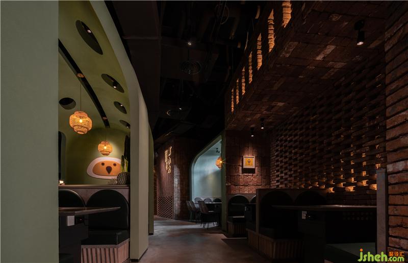 在灰綠色水泥的對(duì)立面,紅磚作為空間另一種主材,形成了有趣的色彩互補(bǔ)和質(zhì)感碰撞,設(shè)計(jì)師將這兩種美學(xué)元素并置在一起,前者體現(xiàn)優(yōu)雅格調(diào),后者則流露出文化沉淀后的底蘊(yùn),而兼顧生活感和藝術(shù)感,也是提升消費(fèi)者品味和凸顯品牌格調(diào)的一種方式。紅磚墻堆砌與拼接的設(shè)計(jì),不只是一道隔斷,傳統(tǒng)的工藝會(huì)賦予它力量感,光線也會(huì)隨著時(shí)間透出神秘的感覺(jué),在實(shí)虛交互之中,人們會(huì)從間隙中滲出詩(shī)意,粗狂但很浪漫。
