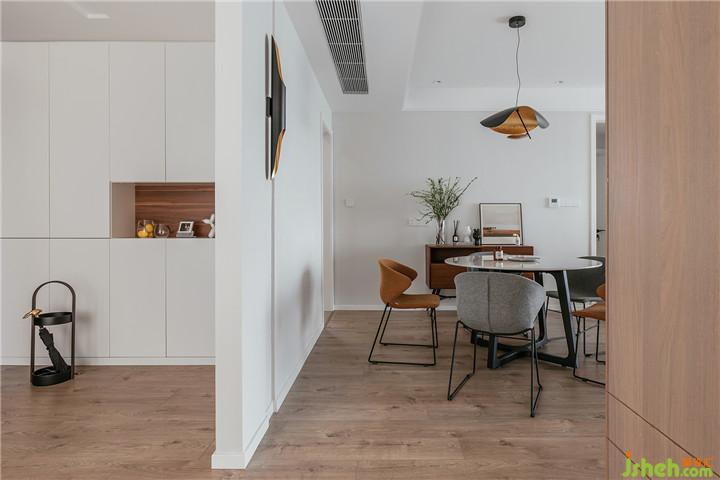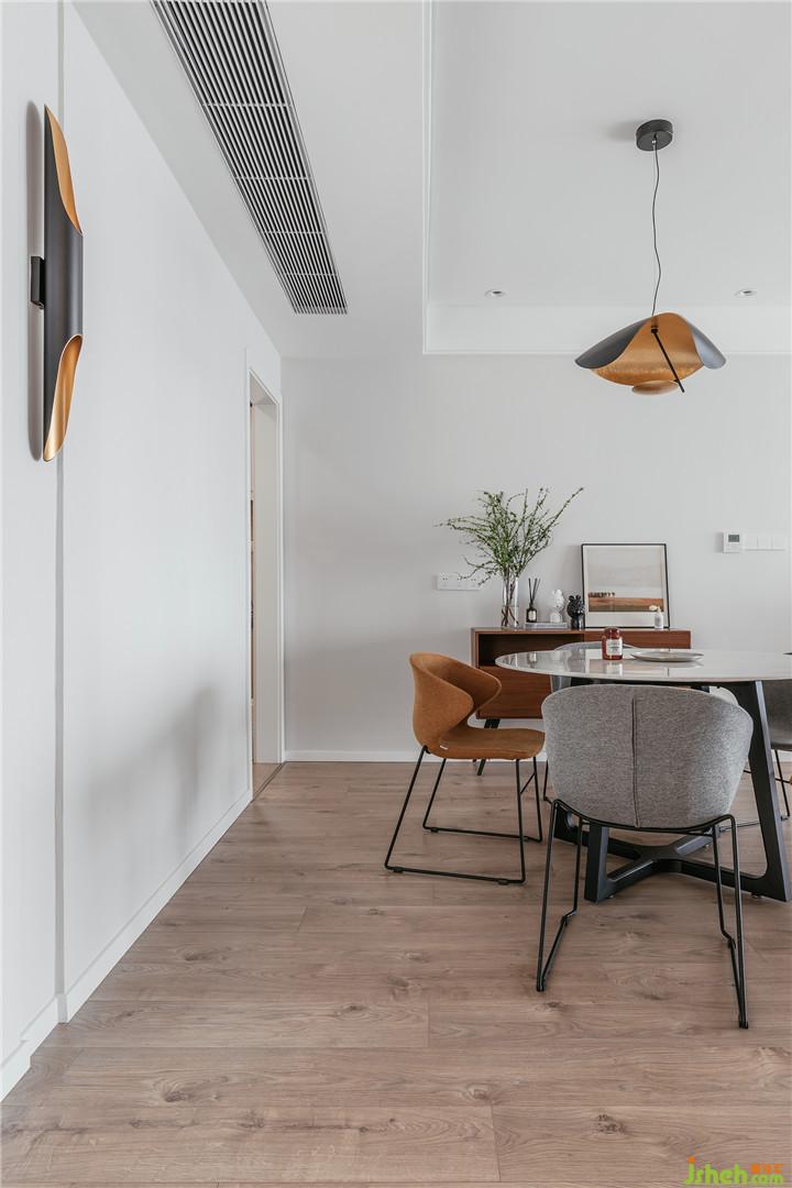 整體設(shè)計(jì)以現(xiàn)代簡(jiǎn)約+北歐風(fēng)格進(jìn)行發(fā)揮,空間主格調(diào)定義為“精簡(jiǎn)、休閑、時(shí)尚、亮麗、自然”幾個(gè)關(guān)鍵詞,期望營(yíng)建一個(gè)賞心悅目、輕松舒適的優(yōu)質(zhì)居所。硬裝從簡(jiǎn),從玄關(guān)延伸至客餐廳墻面的涂裝板造型,其中暗設(shè)了主臥隱形門與隱形儲(chǔ)物柜。全房定制柜體的收口、空調(diào)百葉的處理以及衛(wèi)生間淋浴區(qū)、飄窗臺(tái)大理石等做法細(xì)節(jié)都力求極簡(jiǎn)并體現(xiàn)品質(zhì)。空間設(shè)計(jì)的重點(diǎn)和亮點(diǎn)在于軟裝設(shè)計(jì),例如材質(zhì)、圖案、色彩、家具、陳設(shè)、布藝、花藝的選配控制。在硬裝界面質(zhì)感色調(diào)都比較光滑平淡的前提下,軟裝設(shè)計(jì)在各區(qū)域的裝飾搭配上尋求變化與層次。