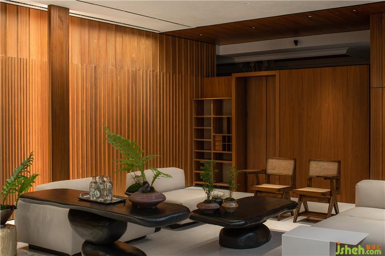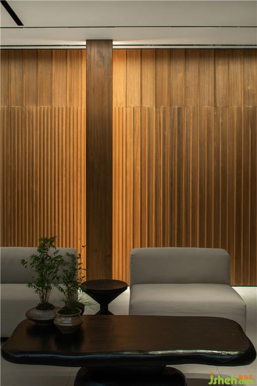 設(shè)計師讓木頭的肌理與空間劃分、穿插形成氣韻一體的整體意象,這是一種對精細(xì)的理解,它暗喻出生活的有序、典雅與時尚的結(jié)合、充滿靈性。