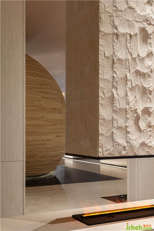 售樓處設計極簡的壁爐設計,簡約的家居線條,及精心擺攝的藝術品,增強空間的體驗感。