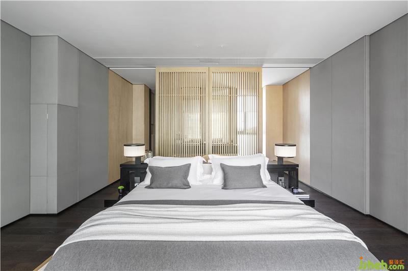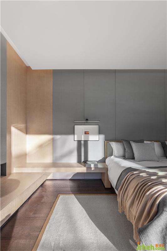 在空間本質(zhì)美的構(gòu)建上,回歸到素凈的材料及色調(diào)??头恳曰疑鳛榭臻g的基底,再以木作的溫潤進(jìn)行調(diào)和,力求呈現(xiàn)出生活的純粹,回歸空間質(zhì)美。當(dāng)多余的精美加工被去除,而回歸物料以及色調(diào)之本真,整個空間呈現(xiàn)出純粹的架構(gòu)。