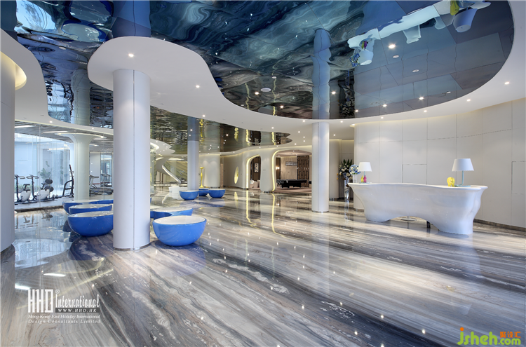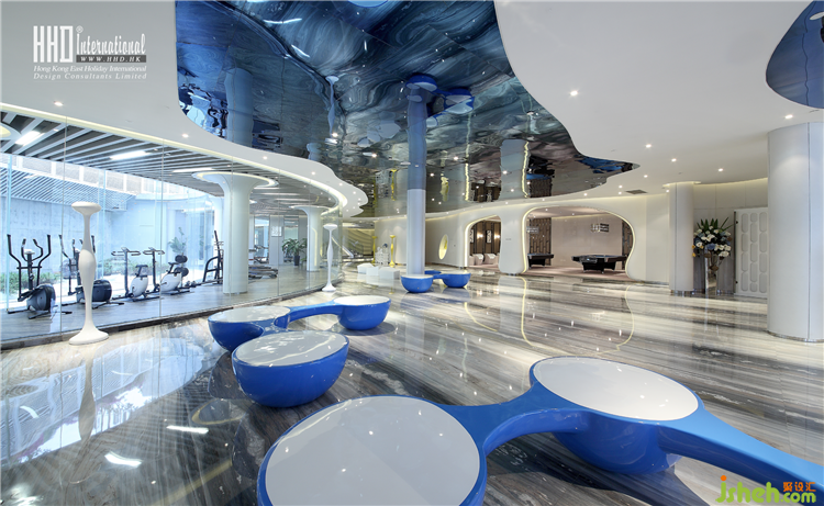 Pure 33with smooth contours as the core andthe overall tone in white, combinedwith shades of blue steel and cold blue line furniture. Blue and white mix letpeople have quiet and peaceful visual experience. The club has also become ecological, low-carbon coastal living base.
