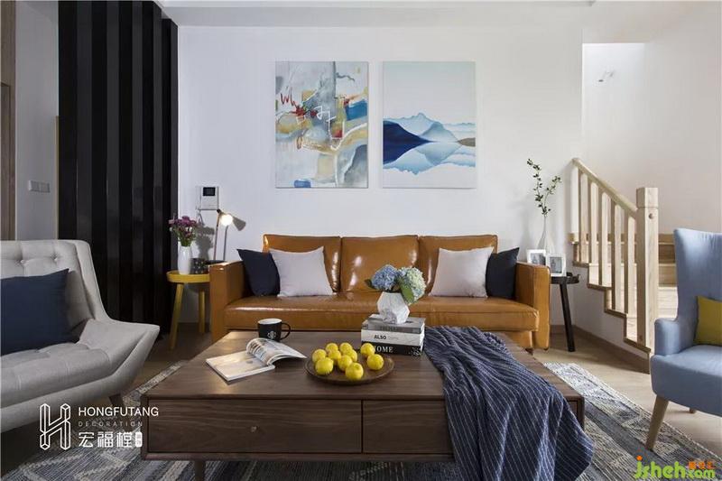 客廳空間面積較大,所以在客廳家具的選用上都選用相對大氣的款式,選用本木色和大白墻的搭配,利用家具最原始的顏色來突顯對自然的敬畏和對本真生活的追求。