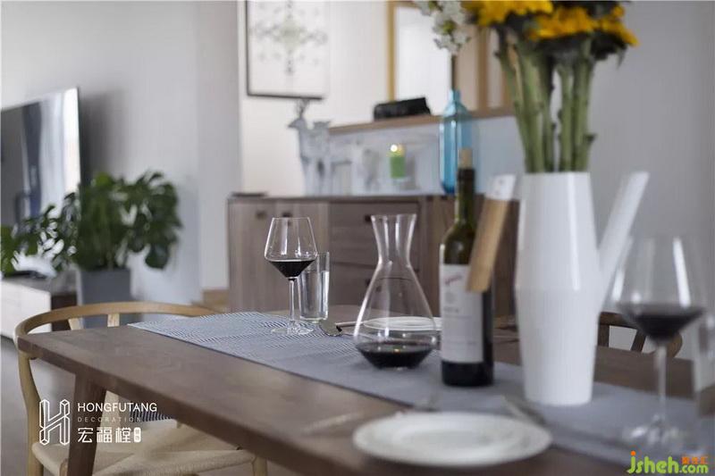 餐廳空間較長,所以在餐桌的選用上,選擇有長方形餐桌可以順餐廳空間擺放;左側靠書房留白區(qū)域設立斗柜,可達到擺放物件和收納使用;整個空間過于空白,在餐廳墻面選用色彩艷麗的明黃色壁畫提高餐廳的明度,活躍餐廳空間。