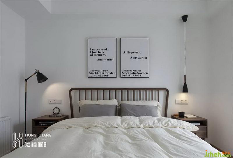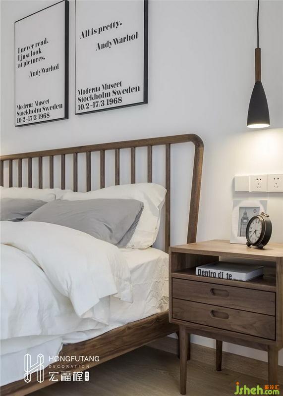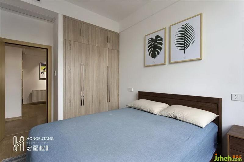 次臥空間面積相對(duì)較小,所以在布局上,將衣柜融入墻壁之中,選用深淺不一的木色家具突顯空間深度,在裝飾排列上還是以簡(jiǎn)約為主。