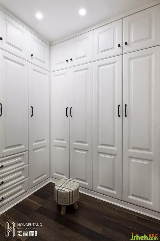 考慮到主臥原始收納空間不足,將主衛(wèi)生間改造成衣帽間,面積由3.8㎡擴(kuò)大到5.3㎡,可滿(mǎn)足業(yè)主日常收納需求;還將衣帽間的入口做成斜面,斜面的采用可以在增加衣帽間的面積的同時(shí)擴(kuò)大臥室空間感。且斜面預(yù)留出的空間,還能增加一組斗柜,用作日常儲(chǔ)物使用。