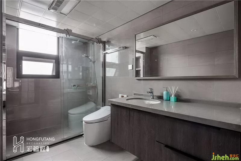 主衛(wèi)室內(nèi)設(shè)計(jì)師選用淋浴門分割干濕功能區(qū),使得空間結(jié)構(gòu)更加有層次,淋浴房及衛(wèi)浴區(qū)間有更好的保暖效果,干濕分離還能一定程度上避免產(chǎn)生漏電、觸電問題。淋浴區(qū)內(nèi)衛(wèi)浴用品采用嵌入式收納,既不占空間,也使得空間更加整潔。