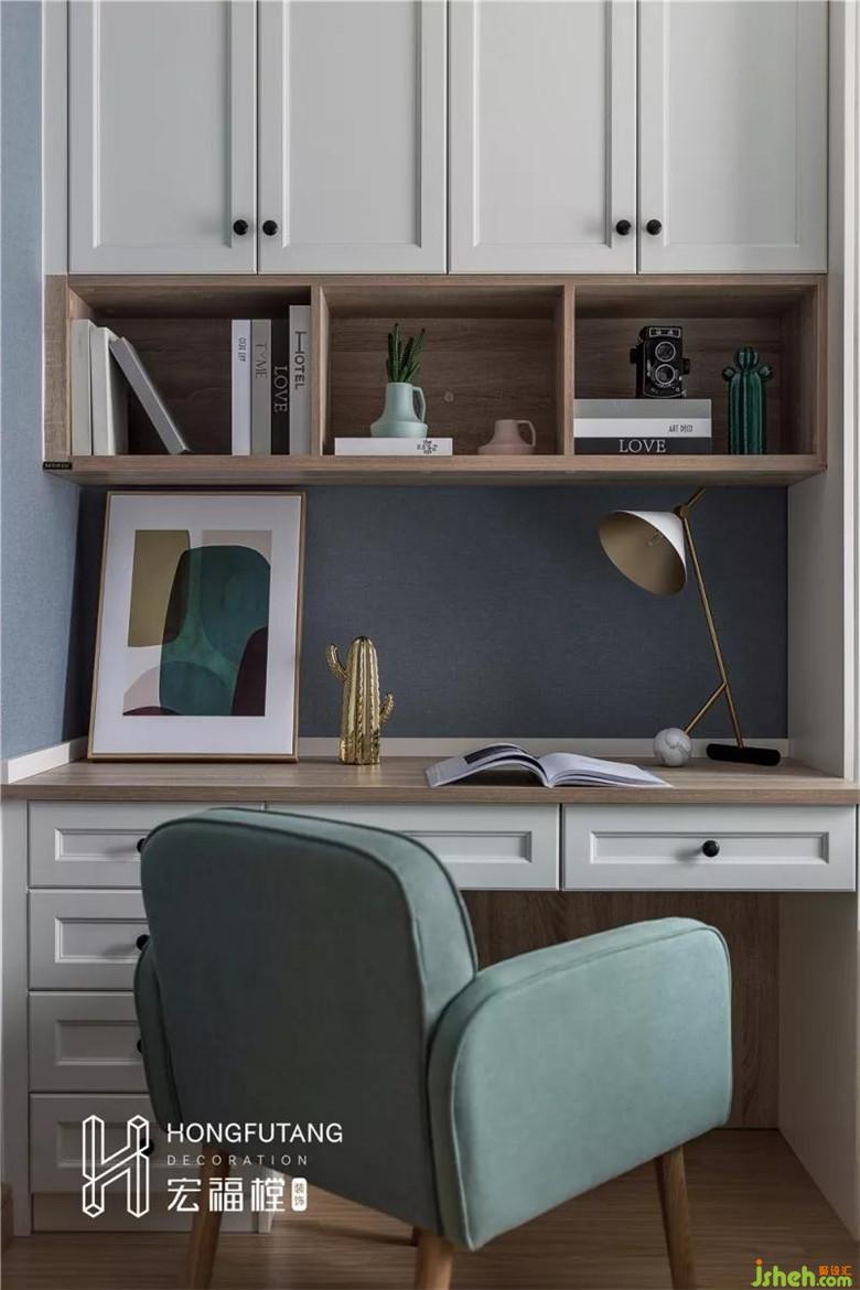 室內(nèi)設(shè)計(jì)師根據(jù)次臥有限的空間,次臥的家具采用榻榻米、書桌、書架、衣柜一體化定制,能夠合理規(guī)劃空間的功能區(qū),統(tǒng)一次臥空間風(fēng)格,也使得有限的空間達(dá)到最大的功能化使用。
