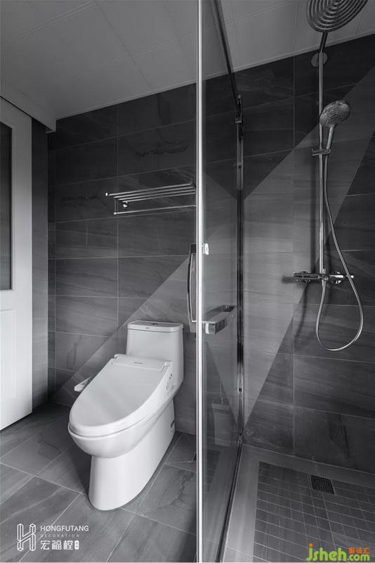 衛(wèi)生間打破常規(guī)鋪貼方式,選用幾何形鋪貼方式,營造空間立體幾何感,區(qū)域劃分清晰,符合數(shù)學(xué)老師幾何思維。